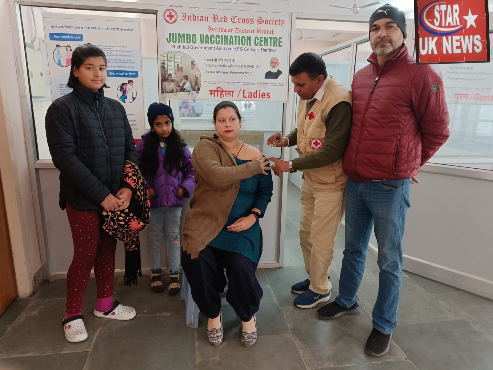 भारत सरकार एवं उत्तराखण्ड सरकार तथा जिला प्रशासन द्वारा कोविड-19 की विशेष एडवाइजरी जारी होने के उपरान्त जिलाधिकारी विनय शंकर पाण्डेय, मुख्य चिकित्साधिकारी डा0 कुमार खगेन्द्र सिंह के निर्देशन एवं रेडक्रास सचिव डा0 नरेश चौधरी के संयोजन में कोविड-19 वैक्सीन की प्रीकोशन डोज(बूस्टर) पात्र लाभार्थियों को इंडियन रेडक्रास द्वारा ऋषिकुल जम्बो वैक्सीनेशन सेन्टर पर लगातार लगाई जा रही है। साथ ही साथ वैक्सीनेशन सेन्टर के नोडल अधिकारी/रेड क्रास सचिव डा0 नरेश चौधरी के नेतृत्व में रेडक्रास स्वयं सेवक वैक्सीनेशन सेन्टर पर आने वाले लाभार्थियों को कोविड-19 वैक्सीन की नई एडवाइजरी के प्रति जागरूक भी कर रहे हैं। सभी लाभार्थियों एवं लाभार्थियों के साथ अन्य जनमानस को भी कोविड-19 बीमारी की वर्तमान स्थिति को अवगत कराते हुये विशेष रूप से जागरूक किया जा रहा है कि 18 वर्ष की आयु से उपर के सभी पात्र लाभार्थियों को यदि अभी तक प्रीकोशन डोज(बूस्टर) कोविड-19 वैक्सीन नहीं लगी है वे सब सर्वोंच्च प्राथमिकता के आधार पर कोविड-19 वैक्सीन की डोज अवश्य लगवालें। ंरेडक्रास सचिव डा0 नरेश चौधरी ने अवगत कराया कि यदि कोई लाभार्थी चलने फिरने में असमर्थ है, दिव्यांग है अथवा अति वरिष्ठ नागरिक है तो इस प्रकार के लाथार्थी को पूर्व की भांति घर पर ही वैक्सीन लगाने की सुविधा इंडियन रेडक्रास द्वारा लगातार दी जा रही है। डा0 नरेश चौधरी ने कहा कि ऋषिकुल जम्बो वैक्सीनेशन साइट पर को-वैक्सीन की प्रथम, द्वितीय एवं प्रीकोशन डोज(बूस्टर) लगाने का अभियान वैक्सीन की उपलब्धता पर लगातार चल रहा है। कोविशील्ड, कोर्बीवैक्स वैक्सीन भी उपलब्ध होने पर पात्र लाथार्थियों को प्राथमिकता के आधार पर लगाई जायेगी। आज भी ऋषिकुल जम्बो वैक्सीनेशन साइट पर को-वैक्सीन की 30 डोज दी गई थी। जो सभी पात्र लाभार्थियों को लगा दी गई। वैक्सीनेशन सेन्टर पर रेडक्रास सचिव डा0 नरेश चौधरी के नेतृत्व में रेडक्रास स्वयं सेवक डा0 आराधना रावत,डा0 आकांक्षा पंवार, डा0 आकांक्षा कैन्थोरा, डा0 दीपिका, डा0 हेमलता, डा0 भावना, डा0 चारूल, डा0 वर्षा, डा0 उर्मिला पाण्डेय, डा0 रेनू, पूनम, संतोष, ने सक्रिय सहभागिता की।