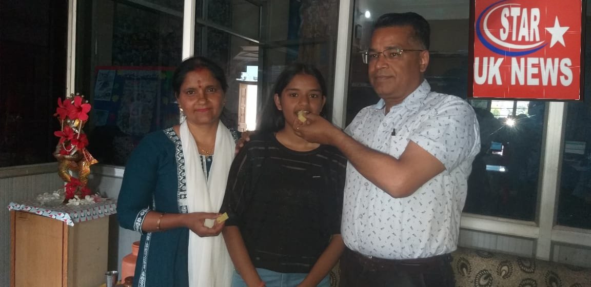 हरिद्वार। प्रेस क्लब, हरिद्वार के पूर्व अध्यक्ष व वरिष्ठ पत्रकार श्री मनोज सैनी की सुपुत्री कु0 भूमिका सैनी ने 12 वीं की सीबीएससी बोर्ड में 95.2% अंक लाते शिवड़ेल स्कूल, जगजीतपुर में टॉप किया है। इस अवसर पर भूमिका सैनी ने अपनी इस उपलब्धि का श्रेय अपने माता पिता और गुरुजनों को देते हुए कहा कि बच्चों को अपने कांसेप्ट किलियर रखने चाहिए। रोज पढ़ाई के बारे में पूछने पर भूमिका सैनी ने कहा की वह 2 घण्टे रोज पढ़ती ध्यान लगाकर पढ़ती थी। भविष्य के बारे में भूमिका का कहना है की वह इंजीनियर बनकर देश की सेवा करना चाहती है। भूमिका की इस उपलब्धि पर स्कूल प्रमुख स्वामी शरद पूरी जी महाराज, प्रधानाचार्य अरविंद कुमार बंसल, नगर विधायक व पूर्व कैबिनेट मंत्री श्री मदन कौशिक, महापौर श्रीमती अनिता शर्मा, नगर पालिका के पूर्व अध्यक्ष श्री सतपाल ब्रह्मचारी, ज्वालापुर विधायक श्री रवि बहादुर, प्रेस क्लब के अध्यक्ष श्री राम चंद्र कन्नौजिया, वरिष्ठ पत्रकार श्री पी एस चौहान, राजेश शर्मा, धर्मेंद्र चौधरी, देवेंद्र शर्मा, अविक्षित रमन, आदेश त्यागी, राहुल वर्मा, गुरप्रीत कालरा, अमित शर्मा, विवेक शर्मा, सुनील मिश्रा, सुरेंद्र शर्मा, रोहित सिखोला, नरेश गुप्ता, मनोज कश्यप, कमल कुमार अग्रवाल, अनूप सिंह, महिला आयोग की पूर्व अध्यक्ष श्रीमति संतोष चौहान, पूर्व दर्जाधारी श्री संजय पालीवाल, श्री किरण पाल बाल्मिकी, पूर्व मंत्री श्री राम सिंह सैनी, समाज सेवी डा0 विशाल गर्ग, मेयर प्रतिनिधि श्री अशोक शर्मा, उप निदेशक सूचना श्री मनोज श्रीवास्तव, सहायक निदेशक श्रीमती अर्चना, जिला सूचना अधिकारी श्री पी सी तिवारी, वरिष्ठ कांग्रेस नेता श्री मुरली मनोहर, महानगर कांग्रेस के कार्यकारी अध्यक्ष अमन गर्ग आदि ने अपनी शुभकामनाएं देते हुए भूमिका सैनी के उज्जवल भविष्य की कामना की।
