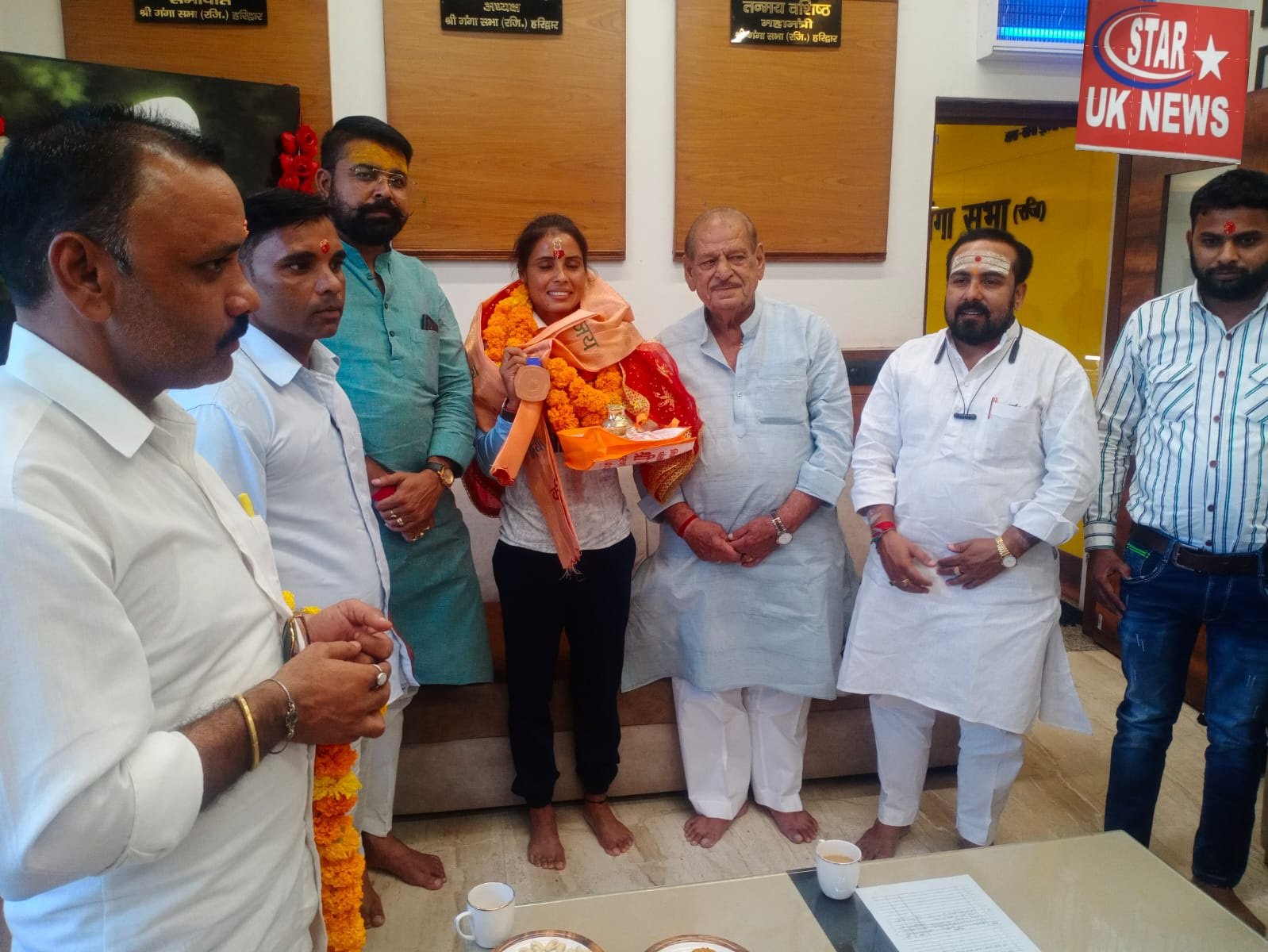 भारतीय महिला हॉकी टीम की सदस्य वा हरिद्वार की बेटी वंदना कटारिया एशियन गेम में कांस्य पदक जीतने के बाद हर की पोड़ी ब्रह्मकुंड पहुंचकर गंगा पूजा भगवती गंगा जी का आशीर्वाद प्राप्त किया। श्री गंगा सभा द्वारा वंदना कटारिया का स्वागत कर गंगाजली प्रसाद वा चुनरी भेंट की। इस अवसर पर सभापति कृष्ण कुमार शर्मा ठेकेदार,स्वागत मंत्री डॉ सिद्धार्थ चक्रपाणि,गंगा सेवक दल सचिव उज्ज्वल पंडित आदि मौजूद रहे।