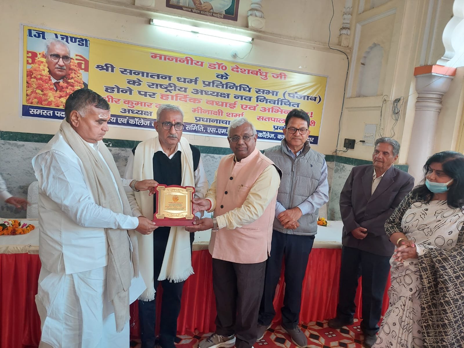 श्री सनातन धर्म प्रतिनिधि सभा पंजाब के नवनिर्वाचित राष्ट्रीय अध्यक्ष डॉ.देशबंधु का अभिनंदन समारोह