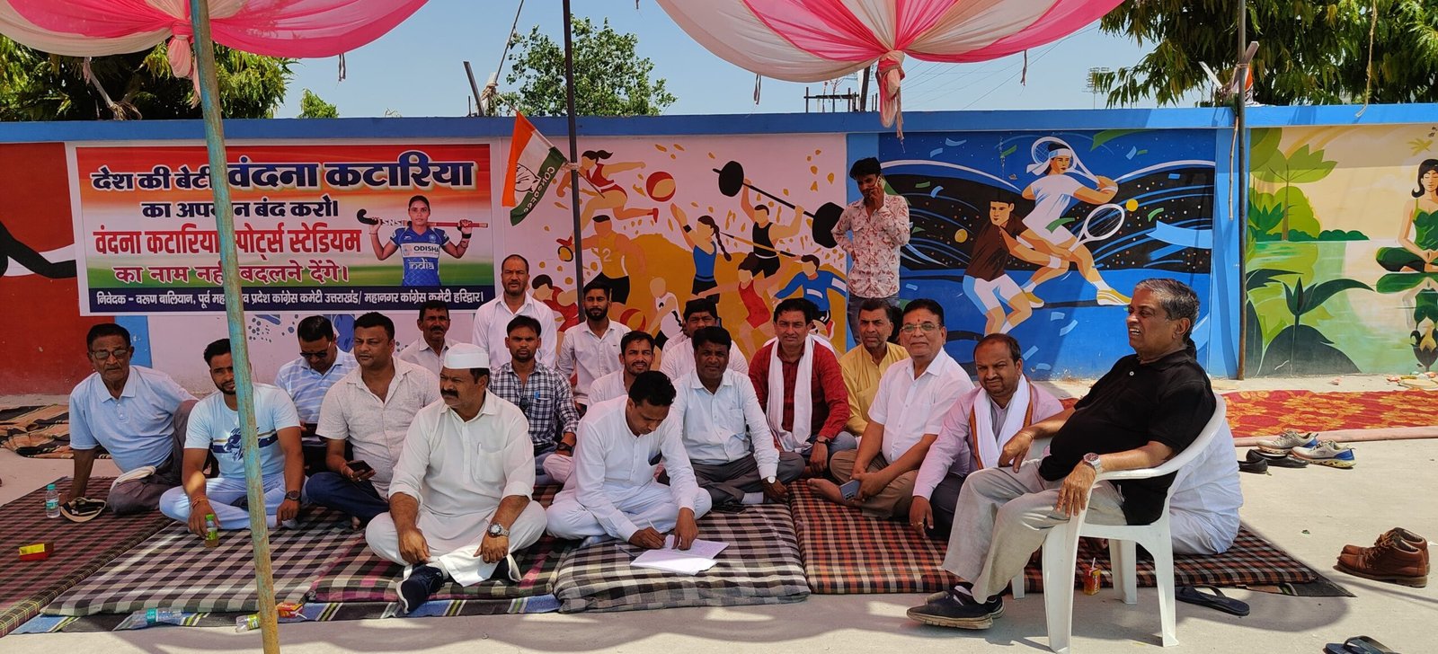 आज तीसरे दिन वंदना कटारिया स्पोर्ट्स स्टेडियम के बाहर अनिश्चितकालीन धरना जारी रहा। कांग्रेस के पूर्व महासचिव वरुण बालियान ने कहा की सरकार ने वंदना कटारिया स्पोर्ट्स स्टेडियम का नाम बदलकर योग स्थली करने कर बाबा रामदेव को उपहार दिया है।