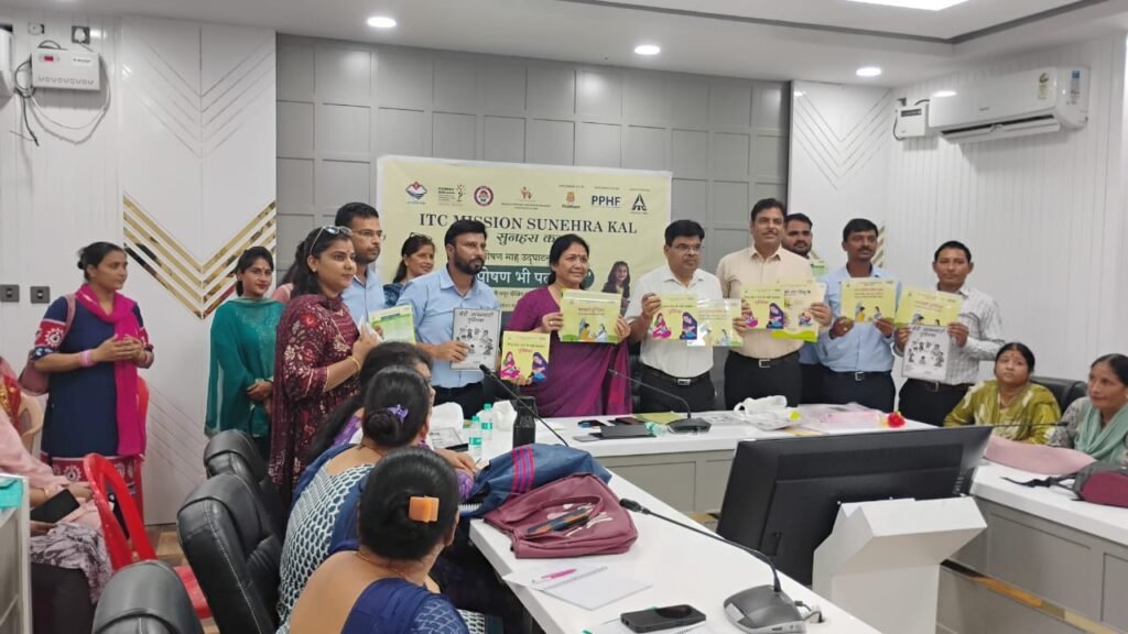 आईटीसी मिशन सुनहरा के सौजन्य से पीपल टू पीपल हेल्थ फाउंडेशन एवं प्रथम फाउंडेशन के संयुक्त प्रयास से आपदा प्रबंधन सभागार रोशनाबाद जिलाधिकारी कार्यालय में ‘पोषण भी पढ़ाई भी’ डीपीओ धर्मेन्द्र यादव, श्रीमती मीना रावत और प्रोजेक्ट डायरेक्टर के. एन तिवारी द्वारा उदघाटन किया गया । जिसमें पोषण माह के तहत पोषण भी और पढ़ाई भी मुख्य बिंदु रहे ।इस उद्घाटन समारोह में 100 से ऊपर लोगों ने भाग लिया। इस प्रोग्राम के तहत सभी अतिथियों का आईटीसी अधिकारी पामीश जी द्वारा तुलसी का पौधा देकर सम्मानित किया और प्रोग्राम को आगे बढ़ाया । पीपुल्स टू पीपल हेल्थ फाउंडेशन की तरफ से पोषण और ग्रोथ मॉनिटरिंग के लिए सभी आंगनवाड़ियों कार्यकर्ताओं की ट्रैनिंग कराई गई और पोषण के साथ साथ पढ़ाई के महत्व पर भी जोर दिया गया । सभी मुख्य अतिथियों ने पोषण और पढ़ाई पर आंगनवाड़ी कार्यकर्ताओं के लिए अपने अपने संदेश दिए और प्रथम एजुकेशन फाउंडेशन के द्वारा आंगनबाड़ी के बच्चों के लिए मेरी आंगनबाड़ी अभ्यास पुस्तिका का अनावरण किया गया है। इस पुस्तिका में कौन-कौन सी गतिविधियां हैं उन गतिविधियों को किस तरीके से बच्चों के साथ करना है इस पर आंगनबाड़ी का ओरिएंटेशन किया गया। आंगनबाड़ी शिक्षण सामग्री एग्जीबिशन में उपस्थित अधिकारियों को आंगनबाड़ी मैं कौन-कौन सी शिक्षण सामग्री प्रयोग किया जाता है बच्चों के संपूर्ण विकास में शिक्षण सामग्री का क्या उद्देश्य है। इस कार्यक्रम में मुख्य अतिथियों द्वारा गर्भवती महिलाओं की गोद भराई, जो बच्चे 6 माह से ऊपर हो गए है उनके लिए अनप राशन और महिलाओं के लिए लक्ष्मी किट आदि रस्मों को विधिवत् पूर्ण किया गया साथ ही श्री धर्मवीर यादव जी द्वारा एक पौधा मां के नाम से एक नीम के पेड़ को लगाकर इस प्रोग्राम को और अधिक शोभायमान किया । इस कार्यक्रम में आईटीसी से पामीश , सचिन कांबले और आर्यन मिश्रा ,पीपल टू पीपल हेल्थ फाउंडेशन, प्रथम फाउंडेशन के कार्यकर्ता मौजूद रहे