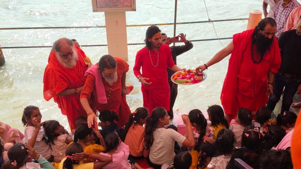 हरिद्वार, 1 अक्टूबर। अखिल भारतीय अखाड़ा परिषद एवं मनसा देवी मंदिर ट्रस्ट के अध्यक्ष श्रीमहंत रविंद्रपुरी महाराज के संयोजन में शारदीय नवरात्रि की नवमी पर श्रवणनाथ मठ में महानवमी एवं वार्षिकोत्सव का आयोजन किया गया। इस अवसर पर श्रीमहंत रविंद्रपुरी महाराज ने श्रवणनाथ घाट गंगा तट पर पूर्ण विधि विधान और वैदिक मंत्रोच्चारण के साथ देवी स्वरूपा 121 कन्याओं का पूजन किया। पूजन के उपरांत श्रीमहंत रविंद्रपुरी ने कन्याओं को अपने हाथोें से भोजन कराया, उपहार एवं दक्षिणा भेंट की और चरण छूकर आशीर्वाद लिया। श्रीमहंत रविंद्रपुरी महाराज ने कहा कि नवरात्रि के नौवें दिन माता सिद्धिदात्री की पूजा की जाती है। माता दुर्गा का यह स्वरूप सिद्धि और मोक्ष प्रदान करने वाला है। इसलिए माता को मां सिद्धिदात्री कहा जाता है। मां सिद्धिदात्री की पूजा अर्चना करने से सभी कार्य सिद्ध होते हैं और मोक्ष की प्राप्ति होती है। महामंडलेश्वर स्वामी हरिचेतनानंद ने कहा कि कन्या पूजन नवरात्र आराधना का सबसे महत्वपूर्ण चरण है। कन्या पूजन से ही नवरात्र साधना की पूर्णाहूति होती हैं। नौ दिन तक देवी दुर्गा के नौ स्वरूपों की आराधना के उपरांत कन्या पूजन करने से साधक को सम्मान, लक्ष्मी, विद्या और तेज प्राप्त होता है। भारत माता मंदिर के महंत महामंडलेश्वर स्वामी ललितानंद गिरी एवं महंत दर्शन भारती ने कहा कि महानवमी देवी दुर्गा द्वारा राक्षस महिषासुर के खिलाफ नौ दिनों तक चले युद्ध की परिणति है। यह पर्व बुराई पर अच्छाई की जीत का प्रतीक है और विजयादशमी पर नए प्रयासों की शुरुआत के लिए इसे शुभ माना जाता है। कार्यक्रम में सभी तेरह अखाड़ों के संत महापुरूष और बड़ी संख्या में श्रद्धालुजन शामिल हुए। महंत राज गिरी, स्वामी रघु वन, स्वामी रवि पुरी, महंत सतीश वन ने सभी संतों और अतिथीयों का फूलमाला पहनाकर स्वागत किया। इस दौरान निरंजनी अखाड़े के सचिव श्रीमहंत रामरतन गिरी, महामंडलेश्वर स्वामी हरिचेतनानंद, महामंडलेश्वर स्वामी ललितानंद गिरि, महंत राघवेंद्र दास, स्वामी हरिवल्लभ दास शास्त्री, महंत सूर्यांश मुनि, स्वामी चिदविलासानंद, स्वामी अनंतानंद, महंत दुर्गादास, महंत प्रह्लाद दास, स्वामी रविदेव शास्त्री, स्वामी हरिहरानंद, स्वामी सुतिक्ष्ण मुनि, महंत बिहारी शरण, महंत रघुवीर दास, महंत जयराम दास, महंत सूरज दास, स्वामी दिनेश दास, एसएमजेएन कालेज के प्राचार्य डा.सुनील कुमार बत्रा, मनसा देवी मंदिर के ट्रस्टी अनिल शर्मा सहित अनेक संत, गणमान्य लोग व श्रद्धालु भक्त शामिल रहे।