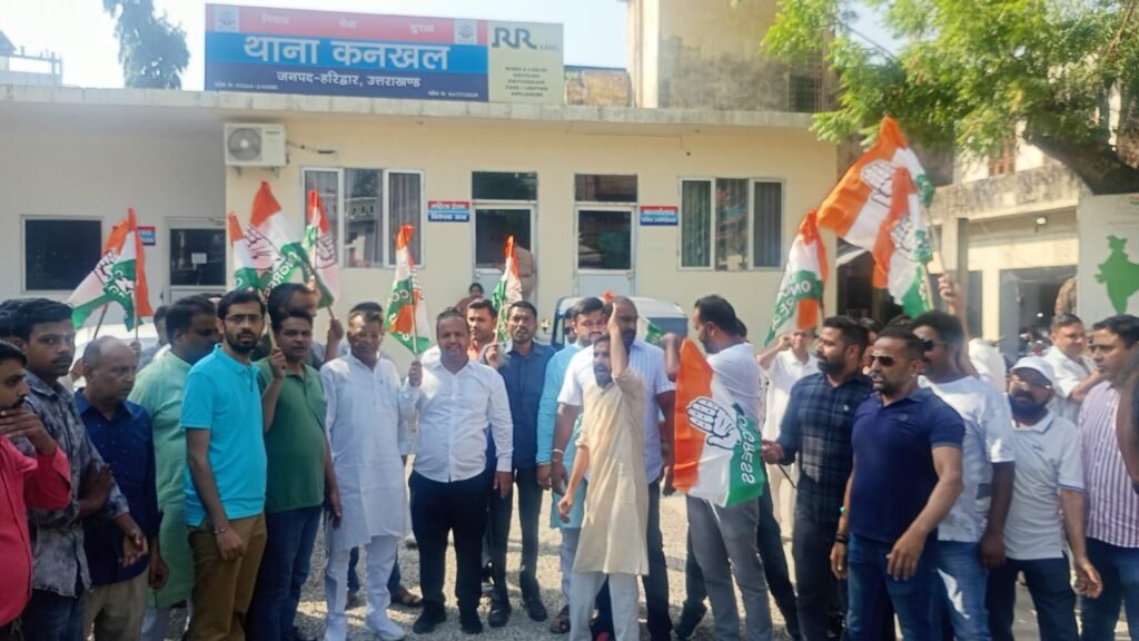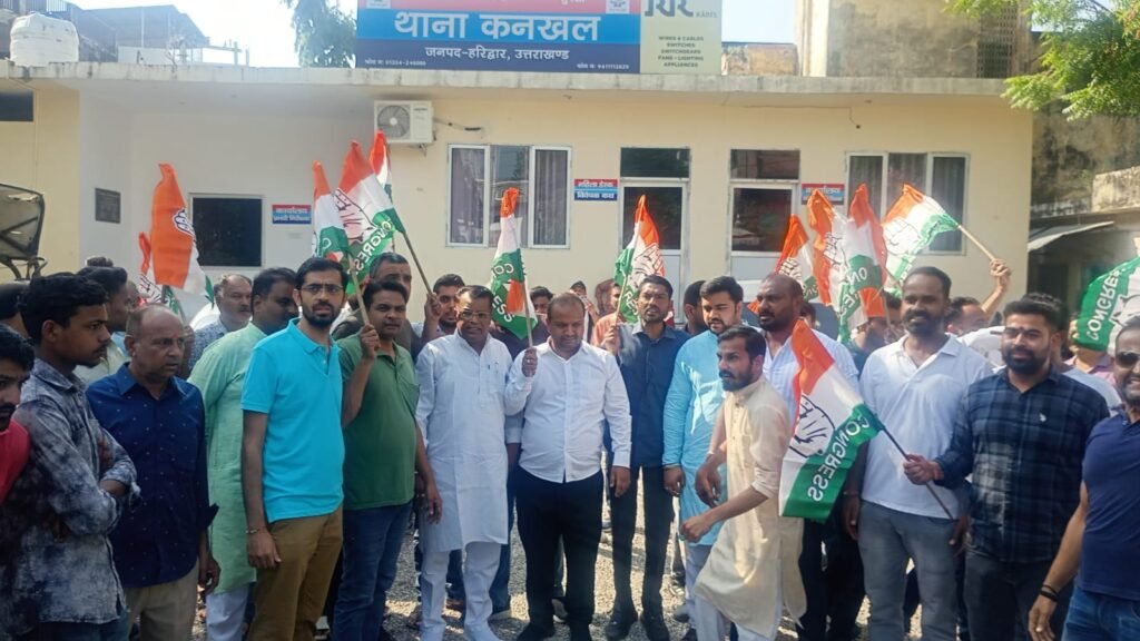 हरिद्वार। जिला महानगर कांग्रेस कमेटी हरिद्वार द्वारा कनखल में लगातार बढ़ती आपराधिक घटनाएं लूट, हत्या, चैन स्नैचिंग के विरोध में कनखल थाना के बाहर भाजपा सरकार के विरोध में प्रदर्शन किया गया