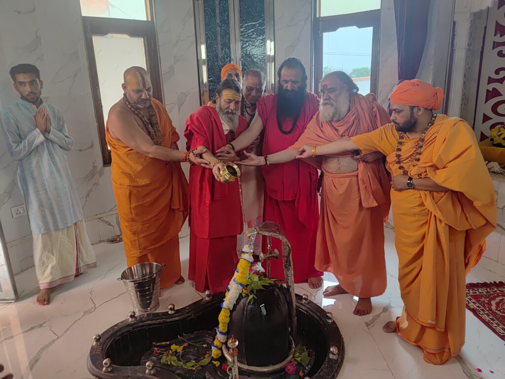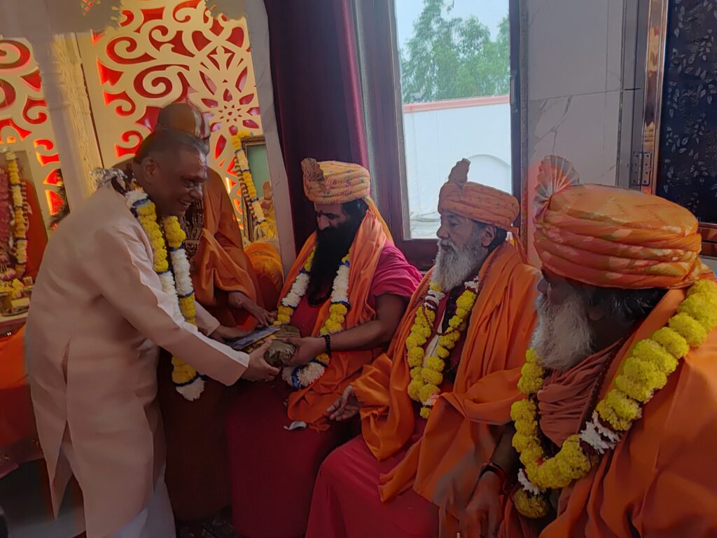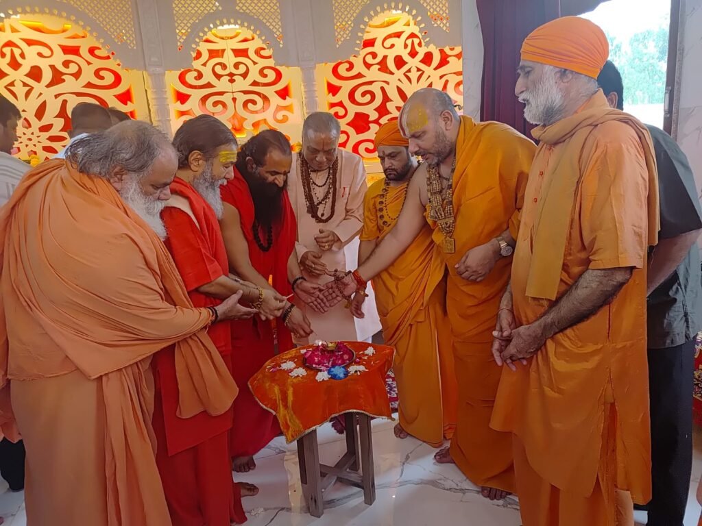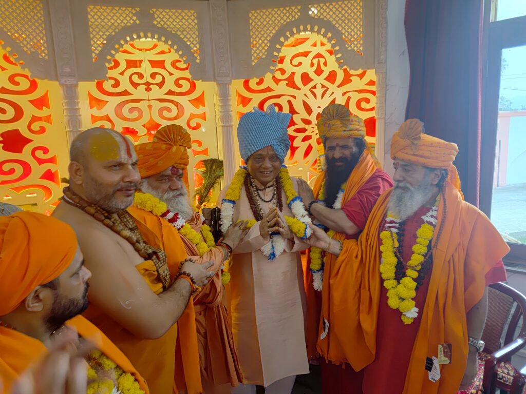महामंडलेश्वर स्वामी राजेश्वर दास महाराज ने फूलमाला पहनाकर सभी संत महापुरूषों का स्वागत किया और भक्तों के कल्याण की कामना की।