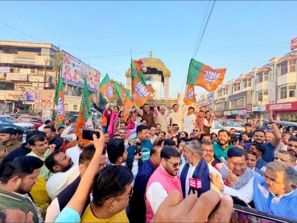 इस अवसर पर रानीपुर विधायक आदेश चौहान ने कहा कि बिहार के अंदर भाजपा और एनडीए लगातार शासन में रही है। और वहां पर लगातार विकास कार्य हो रहे हैं। और आगे भी केंद्र और राज्य सरकार मिलकर सुशासन की स्थापना करेंगे। इन चुनाव ने साबित कर दिया है कि पूरे भारत में भाजपा की लहर है। और उत्तराखंड के अंदर भी हम लोग 2027 में पूर्ण बहुमत से भाजपा की सरकार बनाने जा रहे हैं।अवसर पर महापौर किरण जैसल, नगर पालिका अध्यक्ष राजीव शर्मा, पूर्व विधायक संजय गुप्ता, पूर्व जिला अध्यक्ष संदीप गोयल पूर्व मेयर मनोज गर्ग,जिला महामंत्री संजीव चौधरी, हीरा सिंह बिष्ट , विकास तिवारी ,योगेश चौहान,लव शर्मा,,अनु कक्कड़ , विशाल गर्ग,आशु चौधरी निपेंद्र चौधरी, पारुल चौहान, रंजीया झा,सुषमा चौहान, सुनील पांडे हितेश चौधरी उमेश पाठक आशीष झा प्रीति गुप्ता , रंजीता चतुर्वेदी , एजाज हसन, कैलाश भंडारी, तुशांक भट्ट, बिंदरपाल,राजेश शर्मा ,राजवीर कश्यप , सुधांशु त्रिपाठी, तरुण चौहान अमन कुरेशी, सुधांशु सैनी,तरुण नायर, करुणा चौहान ,रितु ठाकुर,अरविंद कुशवाहा जिला मीडिया प्रभारी धर्मेंद्र सिंह, नकली राम सैनी, लक्ष्मण सिंह नगर, राजन खन्ना, देवेंद्र चावला, पंकज बागड़ी ,मनोज सिंह, विनीत प्रताप सिंह सहित अनेकों कार्यकर्ता उपस्थित रहे।