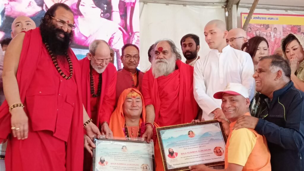 हरिद्वार, 14 नवम्बर। जापान के बाला कुंभ मुनि को निरंजनी अखाड़े के महामंडलेश्वर की पदवी प्रदान की गयी है। जगद्गुरू शंकराचार्य स्वामी राजराजेश्वराश्रम महाराज की अध्यक्षता में निरंजनी अखाड़े में आयोजित भव्य समारोह में सभी तेरह अखाड़ों के संतों की उपस्थिति मे वैदिक रीति से बाला कुंभ मुनि का पट्टाभिषेक किया गया। अखिल भारतीय अखाड़ा परिषद एवं मनसा देवी मंदिर ट्रस्ट के अध्यक्ष श्रीमहंत रविंद्रपुरी महाराज के संचालन में आयोजित पट्टाभिषेक समारोह में सन्यास परंपरा के अनुसार सबसे पहले बालाकुंभ मुनि के कानों से कुंडल उतारे गए। इसके बाद वैदिक मंत्रोच्चार के बीच उन्हें सन्यास दीक्षा प्रदान की गई। जगद्गुरू शंकराचार्य स्वामी राज राजेश्वराश्रम महाराज ने उनके कान में गुरु मंत्र फूंका और उन्हें संन्यास परंपरा से जोड़ते हुए दीक्षा प्रदान की। इसके बाद सभी संतों ने उन पर पुष्पवर्षा और चादर विधि कर उनका महामंडलेश्वर पद पर अभिषेक किया। सन्यास दीक्षा प्राप्त करने और महामंडलेश्वर बनने के बाद स्वामी बाला कुंभ मुनि अब स्वामी बालानंद कुंभ पुरी के नाम से जाने जाएंगे।