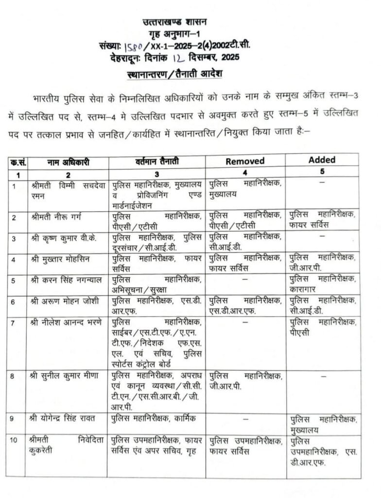 उत्तराखंड राज्य मेंIPS अधिकारियों के तबादले Post navigation स्कूलों में सुविधाओं के साथ गुणवत्तापूर्ण शिक्षा पर फोकस रखें अधिकारी: स्वामी यतीश्वरानंदHRDA में सुशासन कैंप का आयोजन, 8 मानचित्र स्वीकृत – 14 निर्गत (कुल 22 मानचित्र)उपाध्यक्ष श्रीमती सोनिका ने अधिकारियों को त्वरित निस्तारण के निर्देश दिए गए