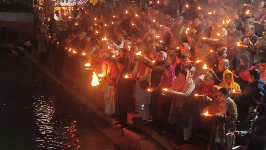 हरिद्वार, 01 जनवरी। हरिद्वार वैश्य एकता परिषद ने नए साल का स्वागत भव्य गंगा महाआरती के साथ किया। हरिद्वार में महाराजा अग्रसेन घाट पर सैकड़ों लोगों ने एक साथ मां गंगा जी की आरती कर सभी के लिए सुख समृद्धि की कामना की। अग्रसेन घाट पर गंगा आरती के वक्त अद्भुत नजारा दिखाई दिया।