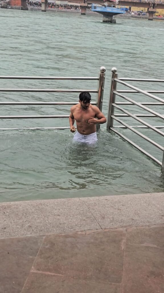 ऋषिकेश क्रिएटिव प्रोडक्शन के ऑनर चिन्मय पंडित के साथ पहुंचे अर्जुन ने बताया कि निजी कार्य से देहरादून आये थे आज चूंकि मेरी फ्लाइट शाम की है समय भी था तो चिन्मय से चर्चाओं के बीच गंगा स्नान का मन बन बैठा।
