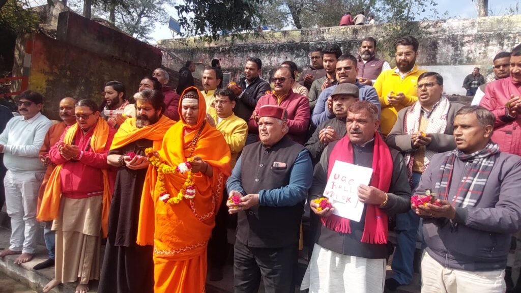हरिद्वार, 30 जनवरी। यूजीसी के नए नियमों पर सुप्रीम कोर्ट के रोक लगाने के फैसला का स्वागत करते हुए श्री अखंड परशुराम अखाड़े के अध्यक्ष पंडित अधीर कौशिक के संयोजन में ब्राह्मण समाज के लोगों ने मालवीय घाट पर मां गंगा की पूजा अर्चना और दुग्धाभिषेक कर आभार जताया और सरकार की बुद्धि शुद्धि की कामना की। इस दौरान श्री अखंड परशुराम अखाड़े के अध्यक्ष पंडित अधीर कौशिक, निरंजनी अखाड़े के महामंडलेश्वर स्वामी वेदमूर्ति गिरी समेत ब्राह्मण समाज के कई लोग मौजूद रहे। सभी ने सुप्रीम कोर्ट के फैसले की सराहना करते हुए यूजीसी को काला कानून बताया और इसे लागू करने वाली कमेटी के सदस्यों के पिंडदान की चेतावनी दी और खून से पत्र लिखकर राष्ट्रपति से यूजीसी के नए नियमों पर प्रतिबंध लगाने की मांग की। निरंजनी अखाड़े के महामंडलेश्वर स्वामी वेदमूर्ति गिरी ने कहा कि यूजीसी के विरोध में सवर्ण समाज के नेताओं का एक भी बयान न आना निंदनीय है। सरकार ने तो इस पर कोई प्रतिक्रिया ही नहीं दी। लेकिन सुप्रीम कोर्ट ने इसका संज्ञान लिया और काले कानून पर रोक लगा दी। उन्होंने कहा कि देश में जिस समय सभी समाज एकजुट हो रहे हैं, उस समय ऐसा कानून लाकर लोगों को बांटने का कार्य किया जा रहा है। जिसे बिल्कुल स्वीकार नहीं किया जाएगा। यदि भविष्य में ऐसा कानून लाया गया, तो स्वर्ण समाज के लोग इसे बिल्कुल भी बर्दाश्त नहीं करेंगे। श्री अखंड परशुराम अखाड़े के अध्यक्ष पंडित अधीर कौशिक ने कहा कि यूजीसी के खिलाफ पूरे भारत में विरोध में आवाज उठी। लेकिन सरकार के कानों पर जूं तक नहीं रेंगी। सुप्रीम कोर्ट ने जो फैसला लिया है, वह स्वागत योग्य है। पंडित अधीर कौशिक ने कहा कि जो काला कानून जबरदस्ती सवर्ण समाज के लोगों पर थोपा जा रहा है। उसे पूर्णतया समाप्त किया जाए। उन्होंने चेतावनी देते हुए कहा कि यदि ऐसा नहीं होता है तो आने वाले समय में उग्र विरोध किया जाएगा। कोर्ट ने तो इस पर रोक लगा दी है, उस फैसले का स्वागत है। लेकिन जब तक सरकार इसे खुद वापस नहीं लेती, तब तक विरोध का सिलसिला चलता रहेगा। कथावाचक पवन कृष्ण शास्त्री ने कहा कि यूजीसी को लाकर सरकार ने स्वर्ण समाज पर जो कुठाराघात किया है, उसे बिल्कुल भी स्वीकार नहीं किया जाएगा। अभी सांकेतिक विरोध किया जा रहा है। यदि आगे इस कानून को लागू किया गया तो स्वर्ण समाज चुप नहीं बैठेगा। अपने बच्चों के भविष्य को इस काले कानून का शिकार नहीं होने देंगे। उन्होंने कहा कि सरकार ब्राह्मण समाज ही नहीं बल्कि अन्य समाज पर भी नए-नए कानून थोपने का कार्य कर रही है। यदि यह काला कानून फिर से थोपा गया तो ब्राह्मण समाज हरिद्वार में यूजीसी कमेटी के सदस्यों का पिंडदान करेगा। इस दौरान पंडित प्रवीण गौतम, वेद पुत्र महाराज, पंडित पव