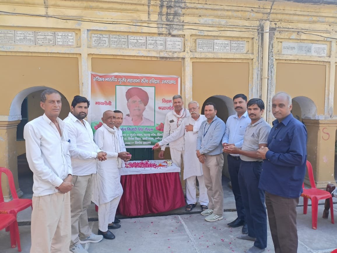 अखिल भारतीय गुर्जर सभा द्वारा गुर्जर धर्मशाला हरिद्वार में आदरणीय कर्नल किरोड़ी सिंह बैंसला को भावभीनी श्रद्धांजलि देते हुए गुर्जर समाज के लोग