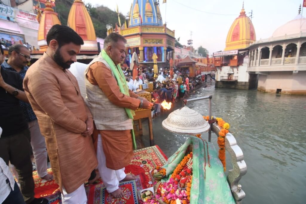 । इसके पश्चात वे निरंजनी अखाड़ा पहुंचे जहां उन्होंने अखाड़ा परिषद के अध्यक्ष व निरंजनी अखाड़ा के सचिव श्रीमहन्त रविन्द्रपुरी से मुलाकात की और आशीर्वाद प्राप्त किया। तत्पश्चात वे हरकीपैड़ी पहुंचे, जहां उन्होंने मॉं गंगा की पूजा अर्चना व आरती की तथा देश व प्रदेश की सुख-समृद्धि के लिये मां गंगा से प्रार्थना की तथा आशीर्वाद लिया। श्रीगंगा सभा द्वारा उन्हें गंगाजलि एवं अंगवस्त्र भेंटकर सम्मानित किया गया।