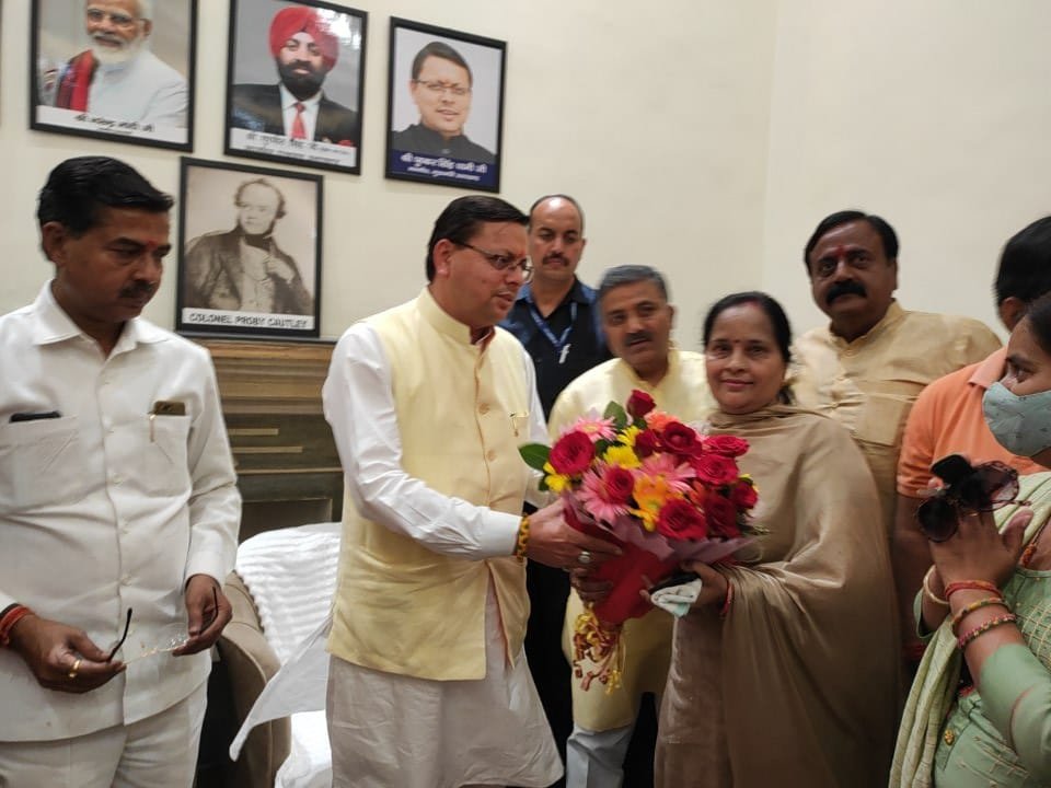 उत्तराखंड के मुख्यमंत्री पुष्कर सिंह धामी से भेंट की महापौर अनीता शर्मा ने