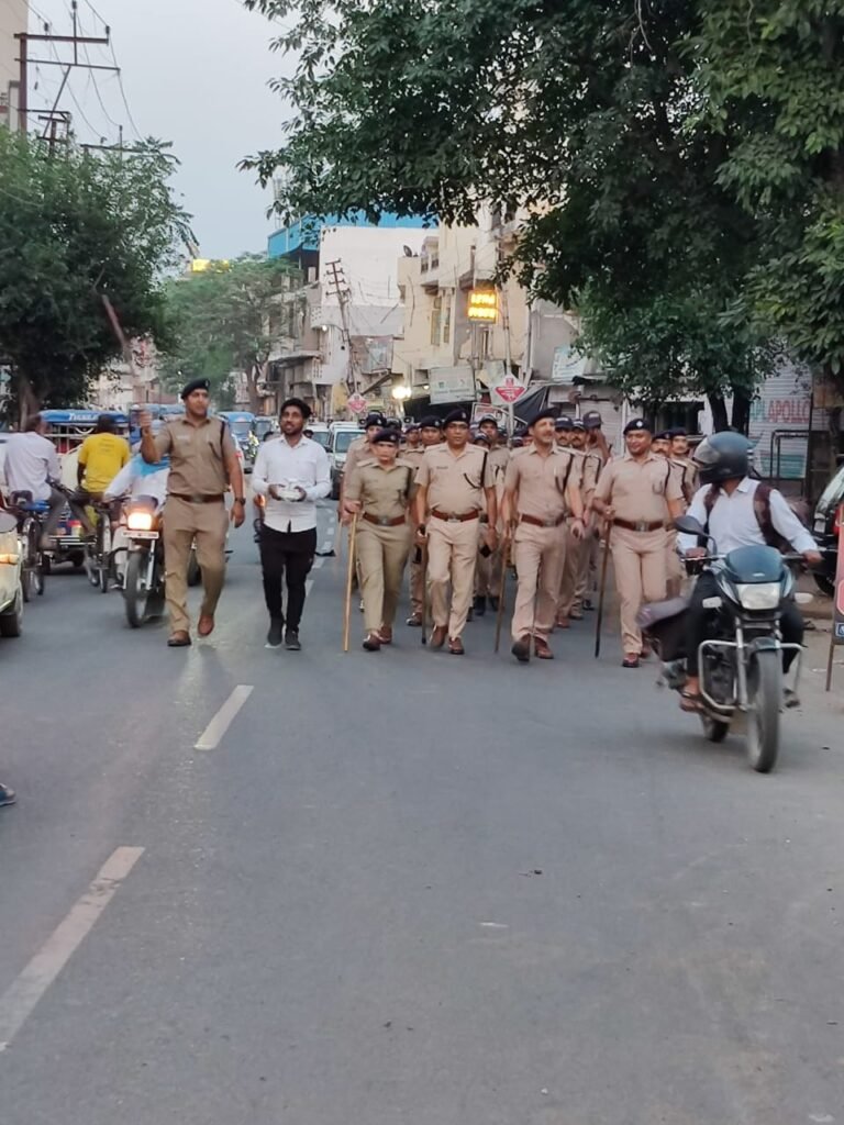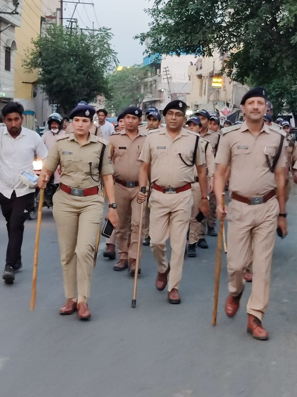 आज पुलिस अधीक्षक नगर महोदय, अपर पुलिस अधीक्षक /क्षेत्राधिकारी ज्वालापुर क्षेत्राधिकारी सदर , क्षेत्राधिकारी सिटी के नेतृत्व में आवश्यक पुलिस बल के साथ कोतवाली ज्वालापुर क्षेत्र अंतर्गत स्थित अति संवेदनशील क्षेत्रों में फ्लैग मार्च निकाला । फ्लैग मार्च के दौरान ड्रोन कैमरे से छतों पर निगरानी की गई । क्षेत्र के लोगों से सांप्रदायिक सौहार्द , और शांति बनाये रखने की अपील की गई । फ्लैग मार्च स्वतंत्र कुमार एसपी सिटी के नेतृत्व में निकाला जिसमें सीओ ज्वालापुर रेखा यादव सीओ सिटी शैलेश कुमार सीओ यातायात राकेश रावत जलापुर कोतवाल महेश जोशी नगर कोतवाल राकेश कुमार सहित भारी पुलिस बल के साथ ज्वालापुर के मुख्य बाजारों से निकले