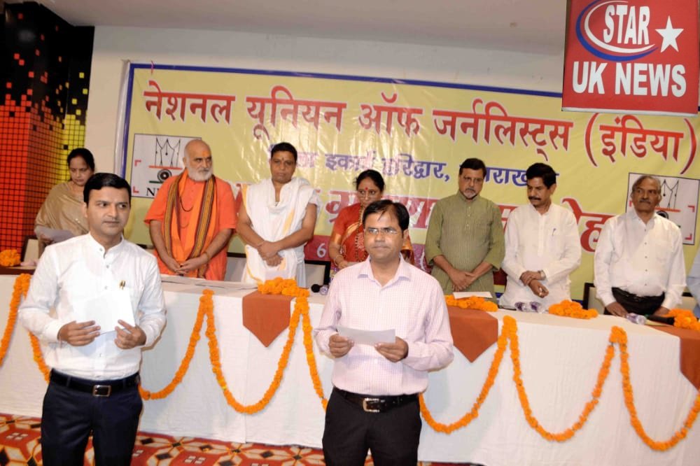 देश में पत्रकारों की सबसे बड़ी संस्था नेशनल यूनियन ऑफ जर्नलिस्ट इंडिया जनपद इकाई हरिद्वार का शपथ ग्रहण समारोह का आयोजन स्थानीय होटल में किया गया। जिसमें मुख्य अतिथि ने अध्यक्ष राहुल वर्मा, महासचिव संदीप रावत, वरिष्ठ उपाध्यक्ष डॉ शिवा अग्रवाल, उपाध्यक्ष राव रियासत पुंडीर, उपाध्यक्ष निशा शर्मा, कोषाध्यक्ष मयूर सैनी, संगठन सचिव रजत चौहान, सचिव सचिव दीपक मौर्य, शमशेर बहादुर बम सचिव, सुनील कुमार प्रचार सचिव, अश्वनी विश्नोई समारोह सचिव और विधि सलाहकार सुरेंद्र शर्मा एडवोकेट को शपथ दिलाई। इनके साथ जिला कार्यकारिणी सदस्य के तौर पर एहसान अंसारी, डॉक्टर धूम सिंह सैनी, कुमकुम शर्मा, प्रतिभा वर्मा, स्वरूप पूरी, आनंद गोस्वामी, सतीश गुजराल, अमरीश कुमार, मंजू नेगी, गणेश वैद्य, सुमित यशकल्याण, पुलकित शुक्ला, सचिन कुमार ने शपथ ली।