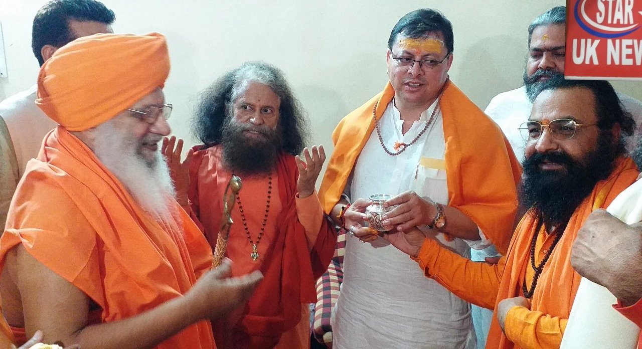 इस अवसर पर अखाड़ा परिषद अध्यक्ष श्रीमहंत रविंद्रपुरी महाराज ने मुख्यमंत्री पुष्कर सिंह धामी को गंगाजली भेंट कर और शॉल ओढ़़ाकर स्वागत किया और उनके उज्जवल भविष्य की कामना करते हुए कहा कि पुष्कर सिंह धामी युवा और ऊर्जावान मुख्यमंत्री हैं। जिनके नेतृत्व में उत्तराखंड का इतिहास बदला है और किसी किसी दल ने लगातार दूसरी बार सरकार में वापसी की है। संत समाज को आशा ही नहीं पूरा विश्वास है कि मुख्यमंत्री पुष्कर सिंह धामी उत्तराखंड को उन्नति के पथ पर अग्रसर करते हुए प्रदेश का चहुंमुखी विकास करेंगे और प्रदेश से पलायन की मुख्य समस्या का निवारण करते हुए युवाओं को रोजगार उपलब्ध कराएंगे। निर्मल पीठाधीश्वर श्रीमहंत ज्ञानदेव सिंह महाराज ने कहा कि मुख्यमंत्री धामी की कार्यशैली और लोकप्रियता उनके व्यक्तित्व को दर्शाती है। वह कुशल राजनेता होने के साथ-साथ सनातन धर्म प्रेमी और संतों के प्रिय हैं। देवस्थानम बोर्ड भंग करके उन्होंने संत समाज और उत्तराखंड के लोगों का सम्मान बढ़ाया है। चारधाम एवं हेमकुंड साहिब यात्रा की बेहतर व्यवस्था के लिए वह आशीर्वाद के पात्र हैं। समस्त संत समाज उनकी दीर्घायु की कामना करता है और आशा करता है कि वह निरंतर उन्नति के पथ पर आगे बढ़ते रहें और प्रदेश के विकास को नई दिशा दें। परमार्थ निकेतन आश्रम के अध्यक्ष स्वामी चिदानंद मुनि महाराज ने कहा कि संत समाज के आशीर्वाद से मुख्यमंत्री पुष्कर सिंह धामी के नेतृत्व में उत्तराखण्ड देश का सबसे विकसित राज्य बनेगा। महंत दामोदर दास, स्वामी सत्यव्रतानन्द, स्वामी ऋषि रामकृष्ण, महंत जसविन्दर सिंह, महंत बिहारी शरण, महंत अंकित शरण, महंत सूरजदास, महंत सूर्यमोहन गिरी, स्वामी कृष्णानन्द, महंत सत्यानन्द गिरी सहित कई संत मौजूद रहे।