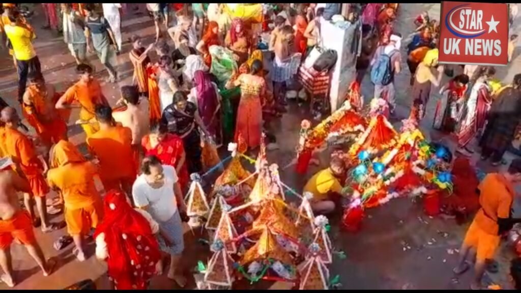 सावन के पहले दिन भारी संख्या में हर की पैड़ी पर भक्तों की भारी भीड़।।