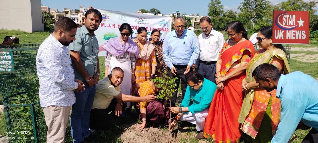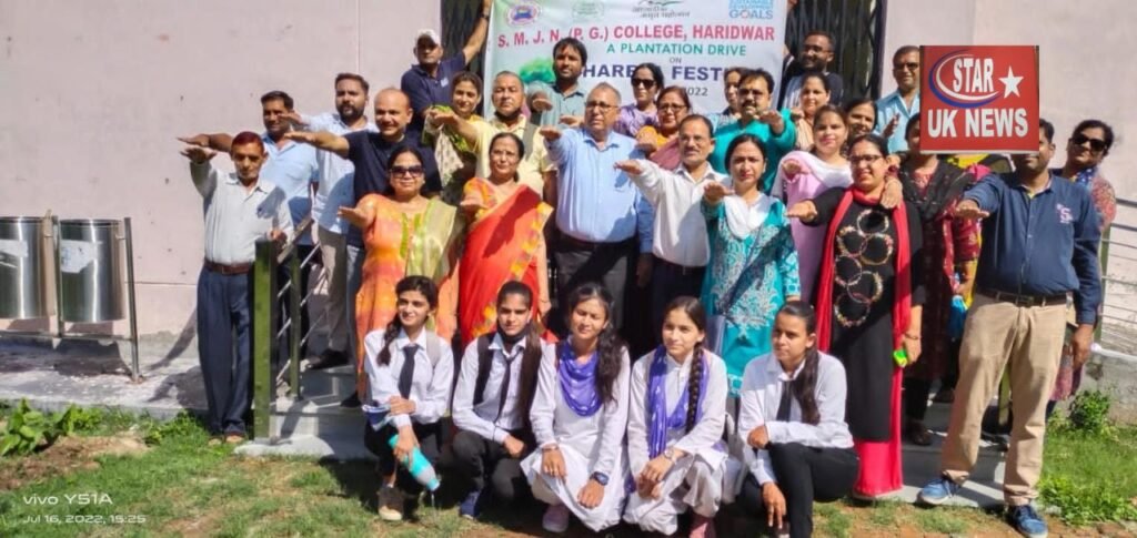 एस.एम.जे.एन. पी.जी. काॅलेज में हरेला के शुभ पावन अवसर पर काॅलेज के प्राचार्य डाॅ. सुनील कुमार बत्रा , डाॅ. संध्या शर्मा, डाॅ. विशाल गर्ग श्री मती नरेश रानी गर्ग, एवं डी सी नौटियाल द्वारा नीम, बिल्वपत्र, गुलमोहर, कनेर, जामुन आवंला आदि के पौधों कोे रोपित कर पौधारोपण कार्यक्रम चलाया गया। इस अवसर पर पर्यावरण संरक्षण हेतु सामूहिक प्रयासों में अपना योगदान देने का भी संकल्प लिया गया।