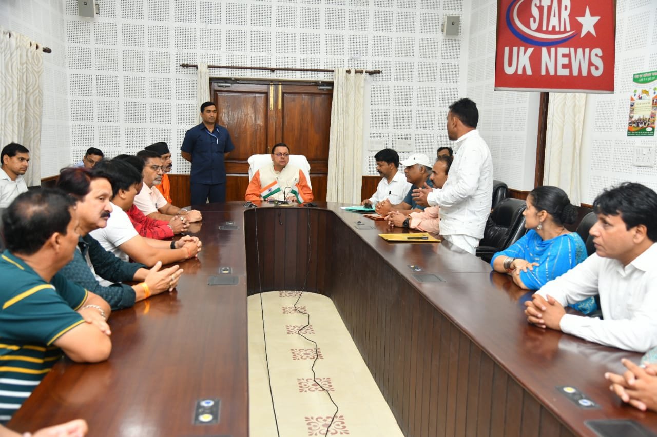 मुख्यमंत्री पुष्कर सिंह धामी से मंगलवार को मुख्यमंत्री कैम्प कार्यालय में फिल्म उद्योग से जुड़े प्रदेश के कलाकारों ने भेंट