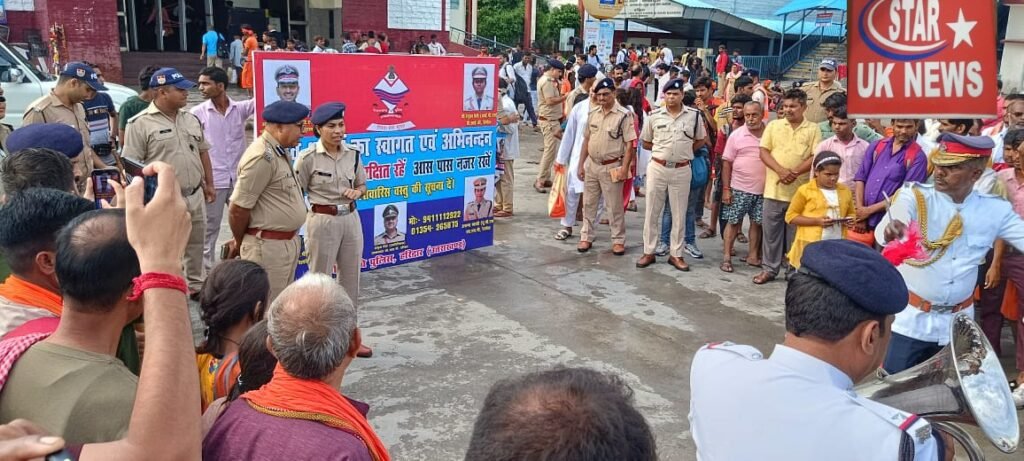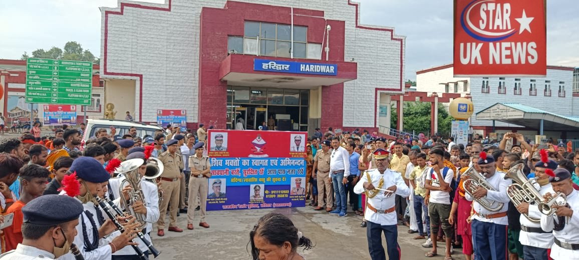उत्तराखंड की जीआरपी पुलिस ने बैंड बाजों के साथ आने वाले कांवरियों का स्वागत किया एसएसपी जीआरपी ने की शुरुआत