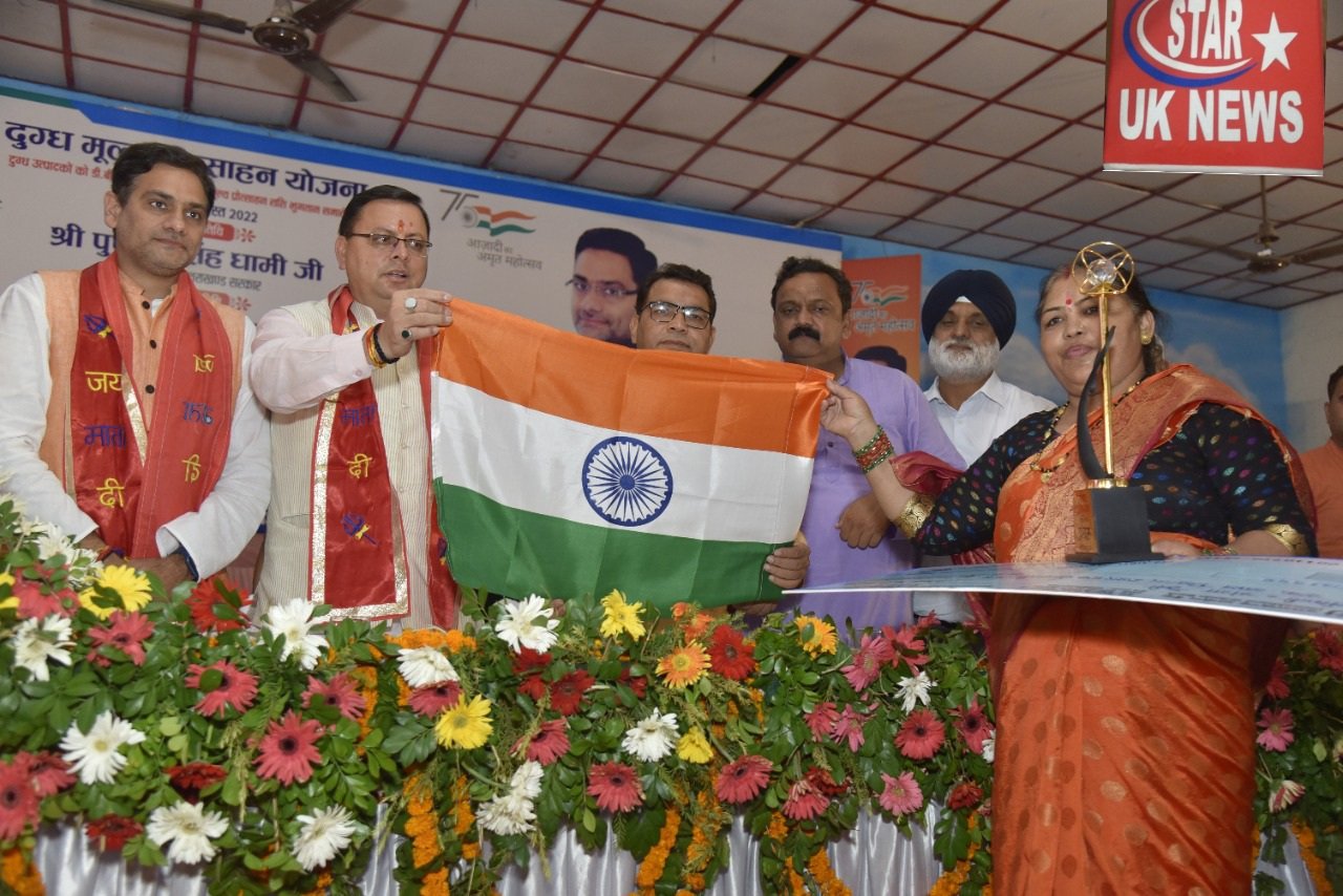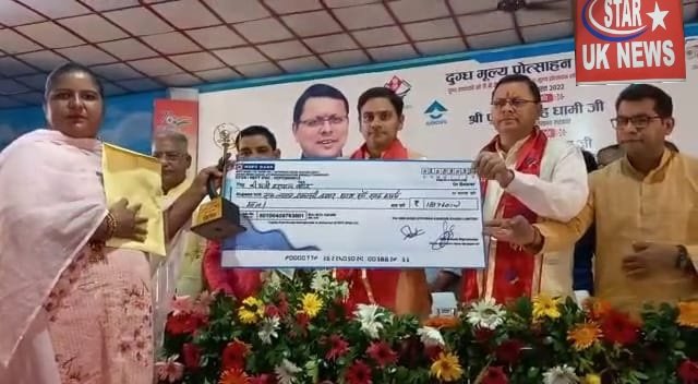 मुख्यमंत्री पुष्कर सिंह धामी ने शुक्रवार को जवाहर नवोदय विद्यलाय रूद्रपुर में डेयरी विकास विभाग द्वारा आयोजित दुग्ध मूल्य प्रोत्साहन राशि भुगतान कार्यक्रम में डीबीटी के माध्यम से दुग्ध उत्पादकों को 22 करोड़ की धनराशि वितरित की। कार्यक्रम में 13 जनपदों के 26 सर्व श्रेष्ठ दुग्ध उत्पादकों को पपुरस्कृत किया गया। जिसमे जनपद नैनीताल के सर्वश्रेष्ठ दुग्ध उत्पादकों मे गंगा देवी को प्रथम, जनपद ऊधम सिंह नगर के गुरू उपदेश देव को द्वितीय व श्रीमती हरपाल कौर को तृतीय पुरस्कार दिया गया।