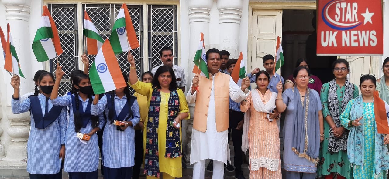 उन्होंने कहा कि केंद्र की नरेंद्र मोदी सरकार और उत्तराखंड की पुष्कर सिंह धामी सरकार महिलाओं के सशक्तिकरण के लिए कार्य कर रही है उन्होंने कहा कि आज से हर घर तिरंगा अभियान की शुरुआत एसडी इंटर कॉलेज में रक्षाबंधन पर्व के साथ की है इस अवसर पर मुख्य अतिथि संजय गुप्ता ने कॉलेज की शिक्षिकाओं छात्राओं को राष्ट्रीय ध्वज तिरंगा वितरित किया इस अवसर पर कॉलेज की प्रधानाचार्य मीनाक्षी शर्मा और खड़खड़ी शाखा के प्रभारी राजीव पंत ने मुख्य अतिथि का पुष्प माला भेंट कर स्वागत किया