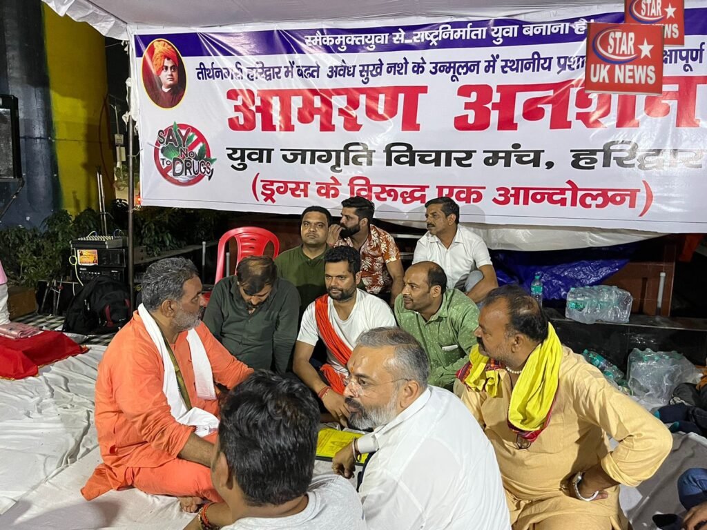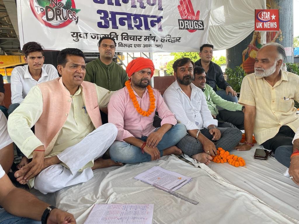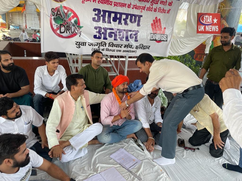 संतों की नगरी हरिद्वार में नशे के खिलाफ बैठे युवाओं से देर रात हरिद्वार के एसपी सिटी ने मुलाकात कर अनशन समाप्त करने को लेकर पहुँचे थे। जिस पर युवाओं ने अपनी कुछ शर्ते एसपी सिटी के समक्ष रखी गई है उन्होंने कहा जब तक उनकी मांगे पूरी नहीं होंगी तब तक वो अनशन समाप्त नहीं करेंगे। आपको बता दे नशे के खिलाफ बैठे युवाओं की मांग है एक टोल फ्री नम्बर और ड्रग्स इंस्पेक्टर इन लोगो से वार्ता करना चाहते है पुलिस द्वारा हरिद्वार में चल रहे नशे के खिलाफ अभियान से युवा संतुष्ट है और हरिद्वार में जगह जगह शराब के विरुद्ध कठोर करवाई की जा रही है। वहीं अनशन करने वाले मनीष चौहान का कहना है कि हमारी 8 मांगे हैं इसको लेकर हमारा अनशन जारी है