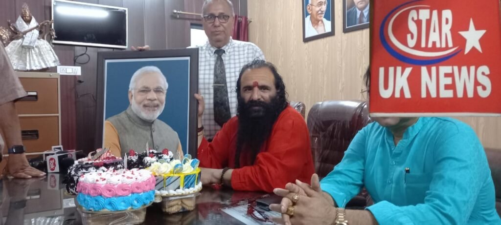 प्रधानमंत्री नरेंद्र मोदी का जन्म दिवस पूरे देश में बड़े धूमधाम से मनाया गया बीजेपी नेता हो या कार्यकर्ता सभी ने अलग अलग तरीके से प्रधानमंत्री नरेंद्र मोदी के जन्मदिन को मनाया धर्मनगरी हरिद्वार में अखिल भारतीय अखाड़ा परिषद के अध्यक्ष महंत रवींद्र पुरी ने प्रधानमंत्री के जन्मदिवस पर केक काटकर प्रधानमंत्री नरेंद्र मोदी को शुभकामनाएं दी और कहा कि प्रधानमंत्री नरेंद्र मोदी को देश ही नहीं विदेश में रहने वाले भारतीय भी पसंद करते हैं क्योंकि उनके प्रधानमंत्री बनने के बाद आज हिंदू अपने आप को सुरक्षित महसूस कर रहा है