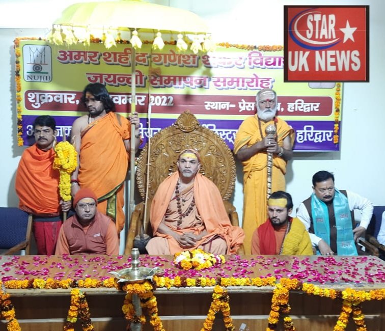 हरिद्वार। देश में पत्रकारों की सबसे बड़ी संस्था नेशनल यूनियन ऑफ जर्नलिस्ट्स इंडिया उत्तराखंड इकाई हरिद्वार के तत्वावधान में अमर शहीद, मुर्धन्य पत्रकार, महान स्वतंत्रता सेनानी, एनयूजे, आई के आदर्श गणेश शंकर विद्यार्थी की 132 वीं जयंती समारोह धूमधाम से मनाया जा रहा है।